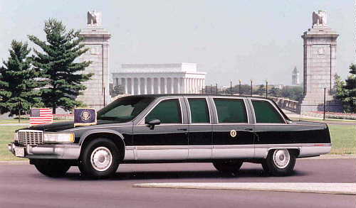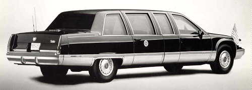 1993 Cadillac![]() ![]() For Release 2:30 p.m. EST, JAN. 6th, 1993 WASHINGTON, DC - The newest Presidential Limousine, the first to be derived from the all-new Cadillac Fleetwood Brougham, has been delivered to the United States Secret Service. It is the first of three identical Presidential Linousines built for the President and his family. Its Cadillac predecessor was presented to President Ronald Reagan in 1984. The 1993 Presidential Limousine features a special chassis and powertrain designed and built by Cadillac in cooperation with GM's Advanced Engineering staff. GM's Cadillac Design Studio developed the body's interior and exterior design while the body structure and special armoring systems were designed by Cadillac Engineering and built by GM's Part Fabrication. Under Secret Service supervision, all facets of the design, developement and manufacture of the limousine were completed totally within General Motors. "Cadillac has a tradition of providing transportation for this nation's presidents. We are very pleased to have been accorded this honor once again," says John 0. Grettenberger, general manager of the Cadillac Motor Car Division. "It demonstrates a real team effort on the part of General Motors." He adds that the dramatic new aerodynamic styling of the Fleetwood Brougham as well as its strong association with special vehicles made it an ideal choice for the conversion to the Presidential fleet. - more - - 2 - The roof of the Presidential Limousine is three inches taller than the production Fleetwood Brougham in order to provide a distinctively large glass area so that the President is visible to the greatest extent possible during parades and ceremonial occasions. The Limousine features a black clearcoat exterior paint finish with a dark blue cloth and leather combination interior. There are Zebrano wood accents in both the driver's compartment and the rear compartment. Embroidered Presidential seals are affixed to each rear passenger door as well as to the center of the rear seat. The total length of 270 inches and wheelbase of 167.5 inches compares to the 225.1-inch long and 121.5-inch wheelbase of the Fleetwood Brougham built at the Arlington Assembly Plant in Arlington, Texas. There is seating for six persons in the rear compartment when three flush folding seats are utilized. The front-wheel track (wheel-to-wheel) is 63.3 inches wide while the rear wheel track is 62.2 inches wide. Because of the increased weight, the new Presidential Limousine is equipped with oversize wheels and tires and a special power brake system. GM's Powertrain Division built the vehicle's V-8 engine and four-speed automatic transmission. The powerplant uses regular -unleaded gasoline. This new Cadillac Presidential Limousine has many special features, including: - A public address system and telephone as part of a special communications system. - Custom engine monitoring gauges built by Delco Electronics and mounted in the instrument panel next to the standard Cadillac instrument cluster. - more - - 3 - - Separate heating and air conditioning units for the front and rear compartments. Each system is individually controlled. - A special partition to separate the driver from the rear seat passengers. A power window in the partition can be lowered by the front seat occupants. - Separate front and rear Delco AM-FM stereo cassette entertainment systems with premium two-way speakers -- eight speakers in the rear and four in the front. - Special 12-volt fluorescent halo lighting developed by GM's Inland Fisher Guide Division. - A rear overhead console which houses the stereo entertainment system and the climate control. - Front and rear custom cloth/leather combination seating areas designed and built by Inland Fisher Guide's Seat Fabrication Center. The fenders are fitted with flag standards. When the President is riding in the limousine, the United States flag is flown from the right front fender and the President's Standard is flown from the left front fender. Two flush-mounted spotlights are located in the fender to illuminate the flags at night. The three limousines are titled "Cadillac Fleetwood Brougham - Presidential Series." * * * |