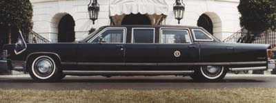 In 1974 Ford supplied another Continental, a 1972 model which was stretched out to 22 feet long, was armor plated, outfitted with bullet resistant glass and powered by a 460 cu. in. V8. This limousine was used by Presidents Ford, Jimmy Carter, and Ronald Reagan. and George H. W. Bush. It is on display at the Henry Ford Museum. ![]() |