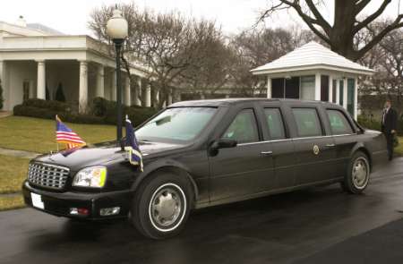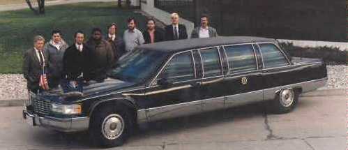 1993 Cadillac![]() ![]() For Release 2:30 p.m. EST, JAN. 6th, 1993 WASHINGTON, DC - The newest Presidential Limousine, the first to be derived from the all-new Cadillac Fleetwood Brougham, has been delivered to the United States Secret Service. It is the first of three identical Presidential Linousines built for the President and his family. Its Cadillac predecessor was presented to President Ronald Reagan in 1984. The 1993 Presidential Limousine features a special chassis and powertrain designed and built by Cadillac in cooperation with GM's Advanced Engineering staff. GM's Cadillac Design Studio developed the body's interior and exterior design while the body structure and special armoring systems were designed by Cadillac Engineering and built by GM's Part Fabrication. Under Secret Service supervision, all facets of the design, developement and manufacture of the limousine were completed totally within General Motors. "Cadillac has a tradition of providing transportation for this nation's presidents. We are very pleased to have been accorded this honor once again," says John 0. Grettenberger, general manager of the Cadillac Motor Car Division. "It demonstrates a real team effort on the part of General Motors." He adds that the dramatic new aerodynamic styling of the Fleetwood Brougham as well as its strong association with special vehicles made it an ideal choice for the conversion to the Presidential fleet. - more - - 2 - The roof of the Presidential Limousine is three inches taller than the production Fleetwood Brougham in order to provide a distinctively large glass area so that the President is visible to the greatest extent possible during parades and ceremonial occasions. The Limousine features a black clearcoat exterior paint finish with a dark blue cloth and leather combination interior. There are Zebrano wood accents in both the driver's compartment and the rear compartment. Embroidered Presidential seals are affixed to each rear passenger door as well as to the center of the rear seat. The total length of 270 inches and wheelbase of 167.5 inches compares to the 225.1-inch long and 121.5-inch wheelbase of the Fleetwood Brougham built at the Arlington Assembly Plant in Arlington, Texas. There is seating for six persons in the rear compartment when three flush folding seats are utilized. The front-wheel track (wheel-to-wheel) is 63.3 inches wide while the rear wheel track is 62.2 inches wide. Because of the increased weight, the new Presidential Limousine is equipped with oversize wheels and tires and a special power brake system. GM's Powertrain Division built the vehicle's V-8 engine and four-speed automatic transmission. The powerplant uses regular -unleaded gasoline. This new Cadillac Presidential Limousine has many special features, including: - A public address system and telephone as part of a special communications system. - Custom engine monitoring gauges built by Delco Electronics and mounted in the instrument panel next to the standard Cadillac instrument cluster. - more - - 3 - - Separate heating and air conditioning units for the front and rear compartments. Each system is individually controlled. - A special partition to separate the driver from the rear seat passengers. A power window in the partition can be lowered by the front seat occupants. - Separate front and rear Delco AM-FM stereo cassette entertainment systems with premium two-way speakers -- eight speakers in the rear and four in the front. - Special 12-volt fluorescent halo lighting developed by GM's Inland Fisher Guide Division. - A rear overhead console which houses the stereo entertainment system and the climate control. - Front and rear custom cloth/leather combination seating areas designed and built by Inland Fisher Guide's Seat Fabrication Center. The fenders are fitted with flag standards. When the President is riding in the limousine, the United States flag is flown from the right front fender and the President's Standard is flown from the left front fender. Two flush-mounted spotlights are located in the fender to illuminate the flags at night. The three limousines are titled "Cadillac Fleetwood Brougham - Presidential Series." * * * |